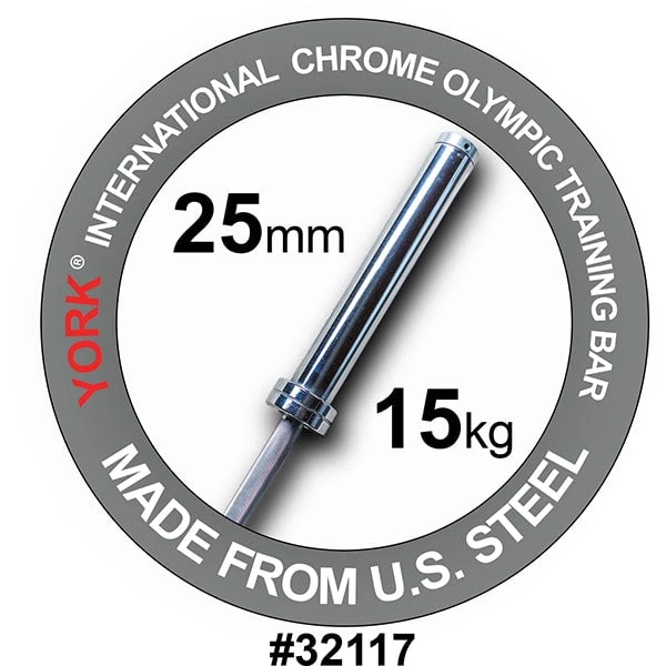 York Women’s Olympic Training Weight Bar – 25 mm, Satin Chrome, Ferous Bushings