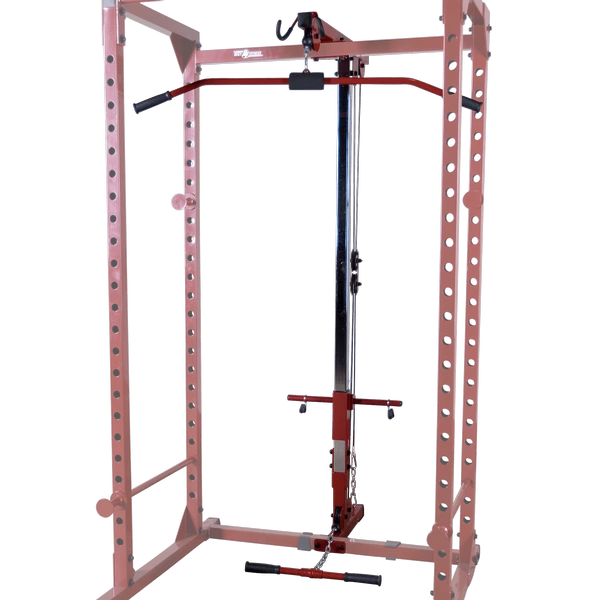 The BFLA100 Lat Attachment transforms your BFPR100r Power Rack into a complete home gym. Perform lat pulldowns, rows, biceps curls, shrugs and more in the comfort and stability of your existing power rack. The BFLA100 Lat Attachment has a high and low pulley with a no cable change design. The BFLA100 features 1” diameter weight posts to accommodate standard weights plates. (Olympic adapter sleeves are available for Olympic plates). Nylon-coated, aircraft quality cables ensure durability and safety even during heavy use. Includes a lat bar and low row bar and is ready for a multitude of other attachments.
