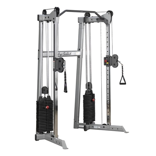 Unrestricted multiple planes of motion approximate the muscle activity required for many of the activities you do in everyday life. The Body-Solid GDCC210 features ergonomically designed adjustments and interchangeable cable handles engineered to put hundreds of strength-building exercises within your grasp.