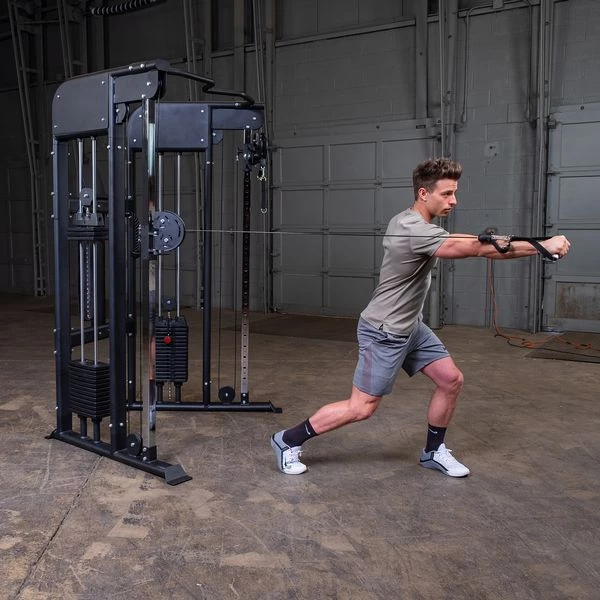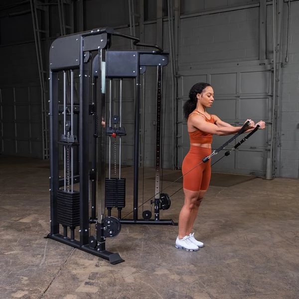 The dual weight-stack design provides isolateral movements and balanced training. The Body-Solid GFT100 features a 1:2 stack to resistance ratio allowing for smaller incremental weight adjustments and an amazing range of motion. Perform flys, presses, squats, lunges, shrugs, rows, curls, extensions, press downs, crunches and so much more. Add an optional Body-Solid bench or stability ball for even more workout variety.