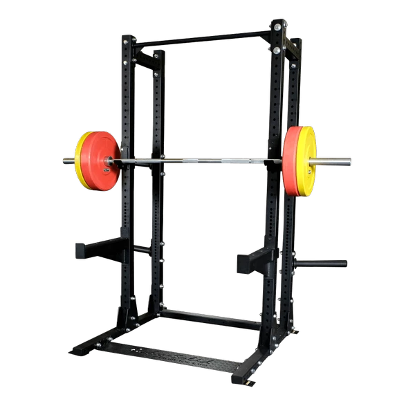 The SPR500BACK is the same base rack as the SPR500 Commercial Half Rack but also includes a rear extension with Olympic plate storage (four weight horns, SR-WPH). The rear extension is a perfect place for the optional storage tray (SPRST), U-links (SR-UL) and many more options. The rear extension combined with the pin and pipe safeties (SPRPS) create a great station for rack pulls and other exercises.