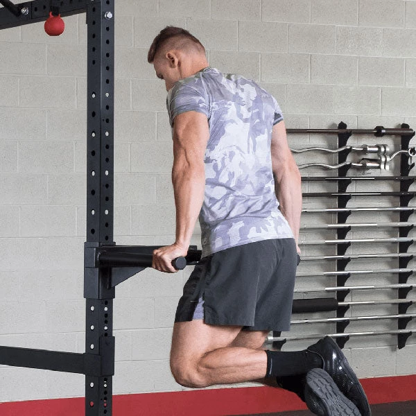 The SR-DIP Dip attaches to the front upright of your SPR500 half rack. The height is adjustable to fit any size user. The large diameter grip is comfortable and tapers ensuring a proper fit.
