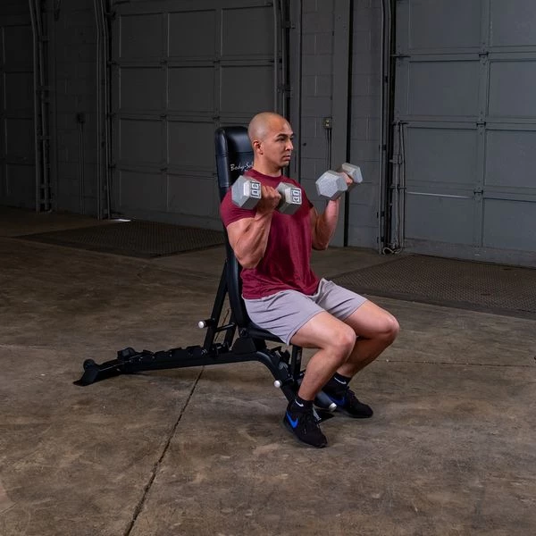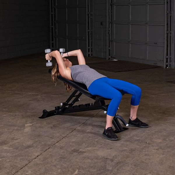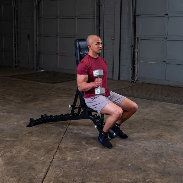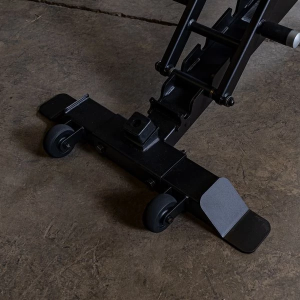 Body-Solid’s new SFID325B Commercial Adjustable bench is designed to meet any facility’s requirements without breaking the bank. Utility benches are a critical part of any commercial or vertical market facility. Home use benches often incorporate leg attachments that get in the way of many exercises. Home use benches also do not have the quality to hold up in a commercial environment. The SFID32B satisfies both of these needs in an affordable quality bench. The unit adjusts from decline to flat to several incline positions. The back pad and seat pad adjust individually of each other. The SFID325B has a tested weight capacity of over 1000 pounds with its 2″x3″, eleven-gauge steel. Thick durable upholstery holds up in any setting. Oversized wheels with a front transport handle make the SFID325B very easy to move. The perfect match for dumbbell workouts, smith machines, squat racks and power racks, the SFID325B is an essential bench for any facility at an amazing value.