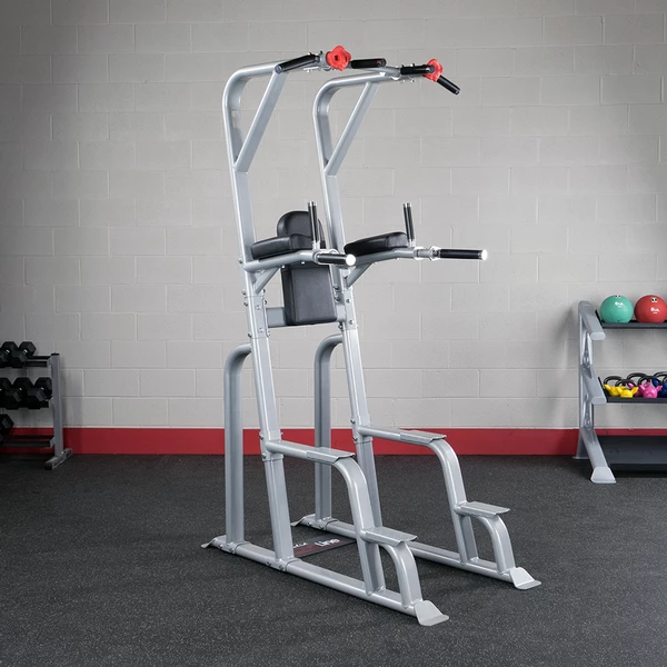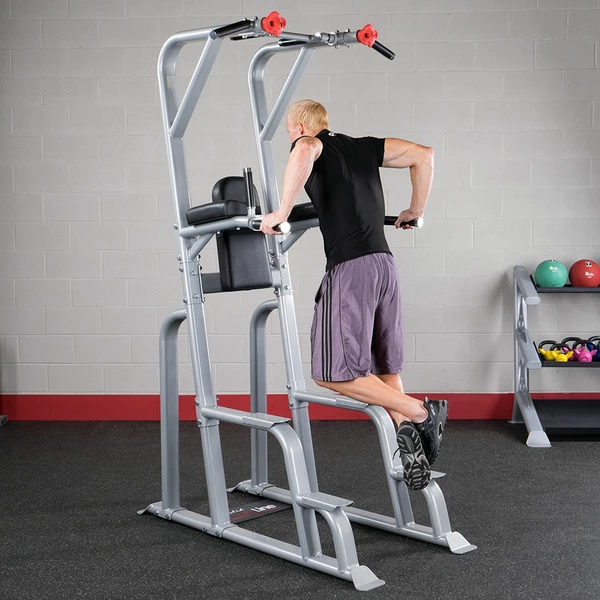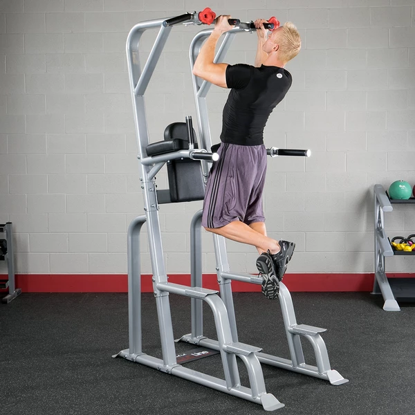Take your pull-ups, chin-ups and dips to the next-level with Body-Solid’s SVKR1000 Vertical Knee Raise — one of the most versatile and effective VKR machines on the market today. Utilizing multiple close and wide grips (including an exclusive rock-climbing grip), the SVKR1000 is the ultimate VKR for home or commercial use. Revolving dip handles move out of the way to allow to perform the dozens of available exercises. Build strong shoulders, lats, traps and more by performing a variety of pullup and chin-up exercises or work on body weight training and develop your core with leg raises and hang crunches.
