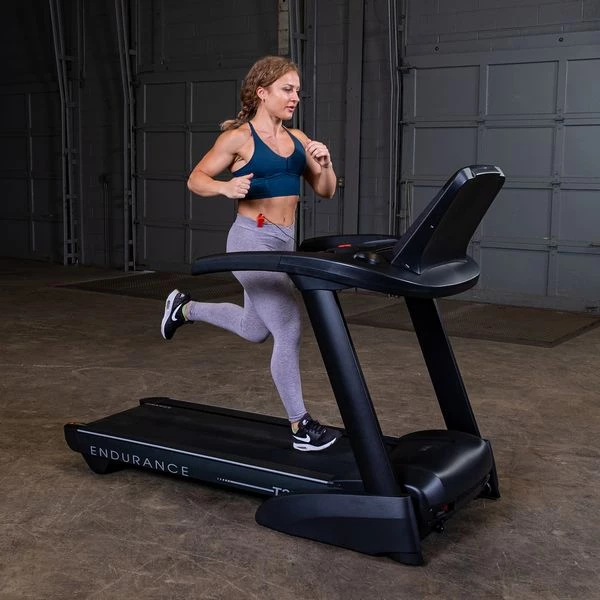 Designed for users with space restrictions, the Endurance by Body-Solid T25 Treadmill quickly and easily folds while also offering transport wheels to allow expedient movement.