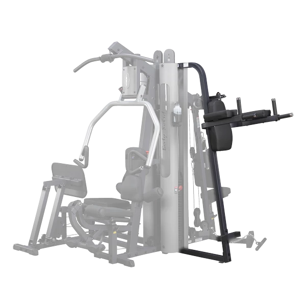 Specially contoured and oversized back pad, arm pads and handgrips add comfort to the abdominal, shoulder and triceps workouts. It’s a combination Vertical Knee Raise and Dip Station.