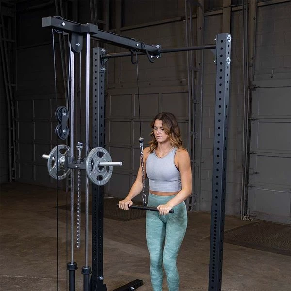 This attachment allows users to perform several high and low pulley exercises on their half rack including lat pulldowns, rows, biceps curls, shrugs, and more.