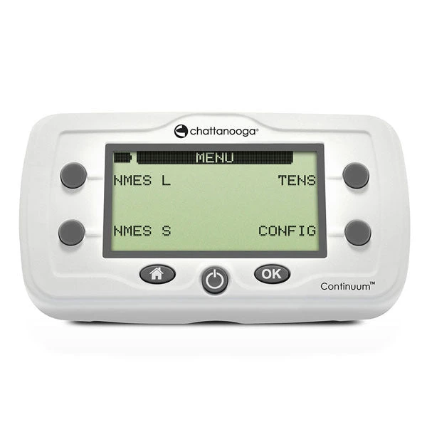 The Chattanooga Continuum is a portable 2 channel stimulator used by therapists in clinics and patients at home to provide electrical stimulation treatments in pain management (TENS) and neuromuscular stimulation (EMS/NMES). Clinicians and their patients can experience improved results by incorporating Continuum into their treatment. It is used to strengthen muscles to help prevent injury, or during recovery following trauma or surgery.
