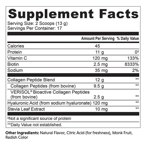 - Skin: Verisol® Bioactive Collagen Peptides are clinically researched to support skin elasticity and minimize the appearance of fine lines and wrinkles.*