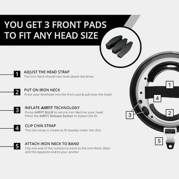 - AIRFIT Technology – A custom fit is key. Inflate the rear pad with air using the AIRFIT Bulb to keep the Iron Neck snug