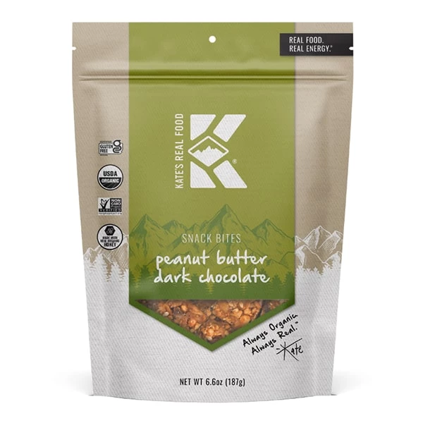These Peanut Butter Dark Chocolate Bars pack in 3 grams of protein and 2 grams of fiber per serving for long-lasting energy. All of Kate’s Real Food products are made with certified gluten-free oats, making them a good choice for those with gluten allergies or intolerances.