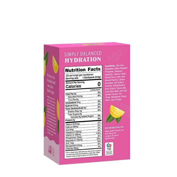 Ultima Replenisher is an advanced, balanced hydration drink with 6 essential electrolytes and trace minerals. 20ct stick pack box