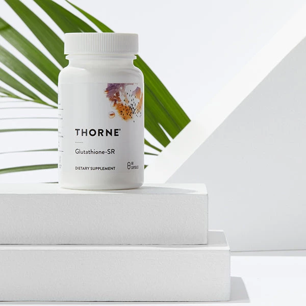 Glutathione-SR from Thorne represents an important breakthrough in glutathione supplementation. Absorption of oral glutathione can be affected by stomach acid or enzymes in the duodenum, which can break glutathione into its amino acid components. However, the sustained-release properties of Thorne’s Glutathione-SR protect it from stomach acid and digestive enzymes, allowing slower release and a more steady level in the blood of this essential nutrient.‡